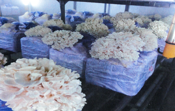 舞茸は、菌糸類の中でとりわけ雑菌に弱く接種は厳重な清潔環境で行われます。